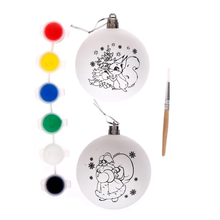 Ёлочные шары под раскраску «Волшебство Нового года», d=7 см, 2 шт, краски, набор для творчества — Характеристики