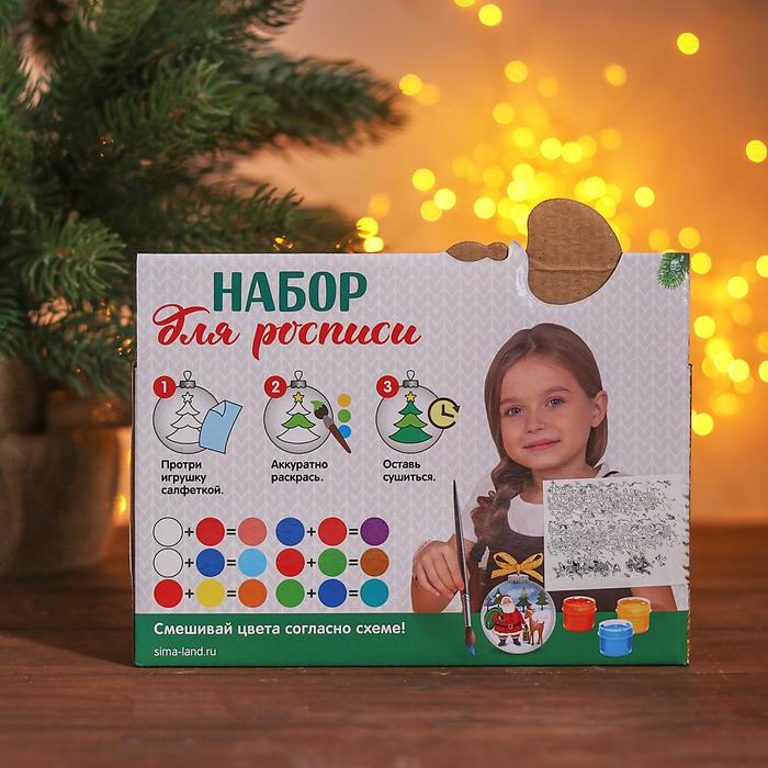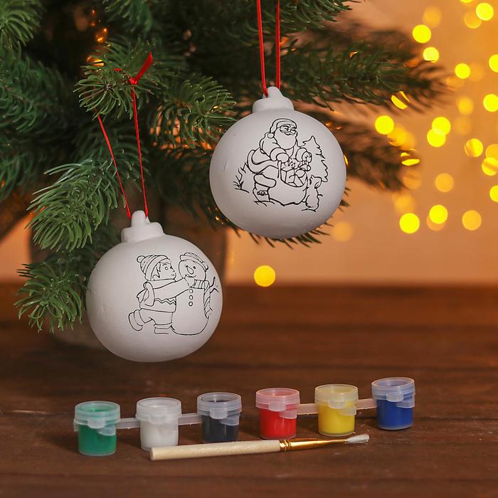 Ёлочные шары под роспись «Дедушка Мороз и Мальчик», 2 шт., с подвесом, краска 6 цв. по 2 мл, кисть — Характеристики