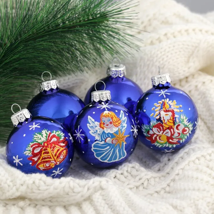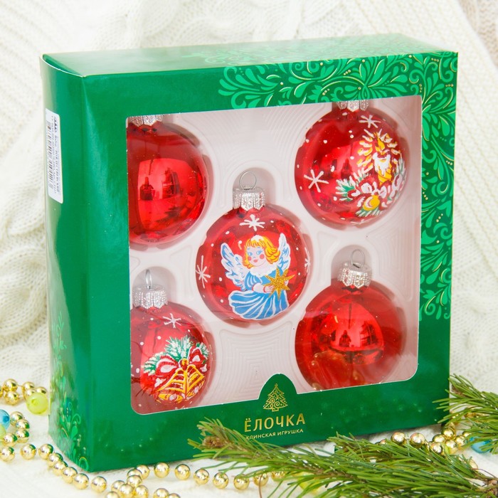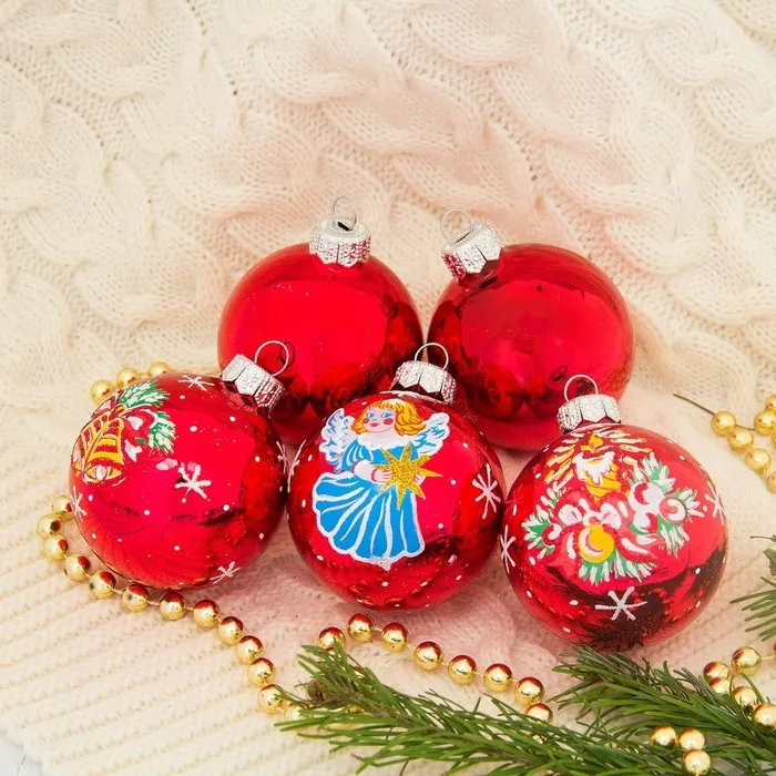 Ёлочные шары «Рождественские», d=6 см, набор 5 шт., МИКС — Характеристики