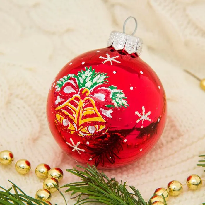 - Форма — шар, универсальный элемент любого новогоднего убранства.