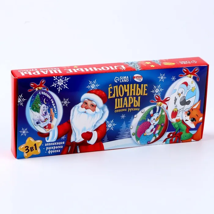 3 вида творчества – фреска, аппликация и раскраска в наборе 3 заготовки для творчества (шара) диаметр шаров 8 смПара мгновений, и оригинальный ёлочный шар у вас в руках! Готовая игрушка станет чудесным дополнением новогодней атмосферы или порадует близкого человека.