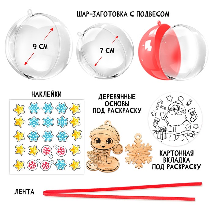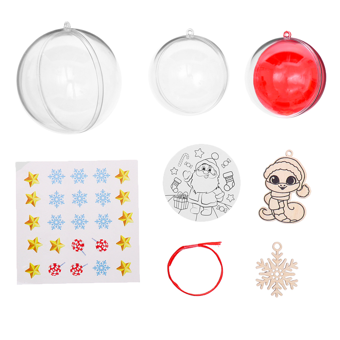 Ёлочные шары «Змея», своими руками, диаметр 9 см и 7 см, с наклейками, с деревянными основами — Характеристики