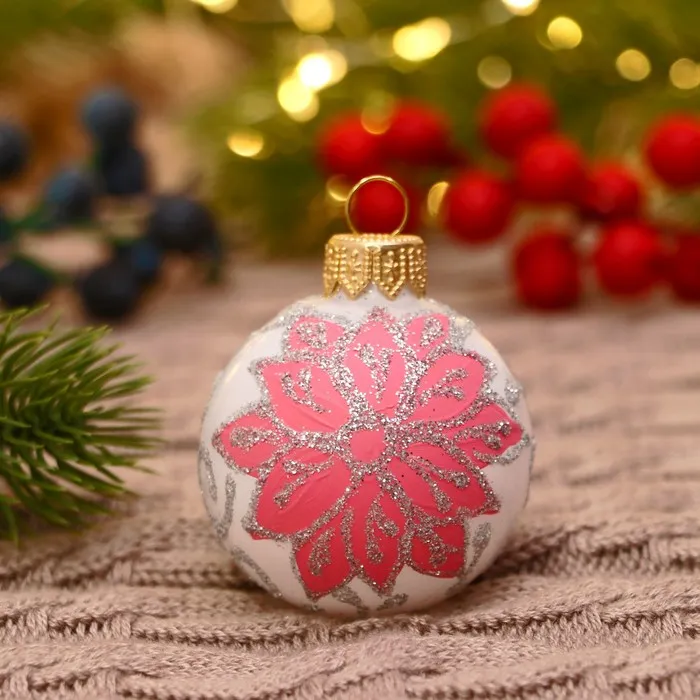 Ёлочный шар d-5 см "Красный цветок" ручная роспись, белый — Характеристики