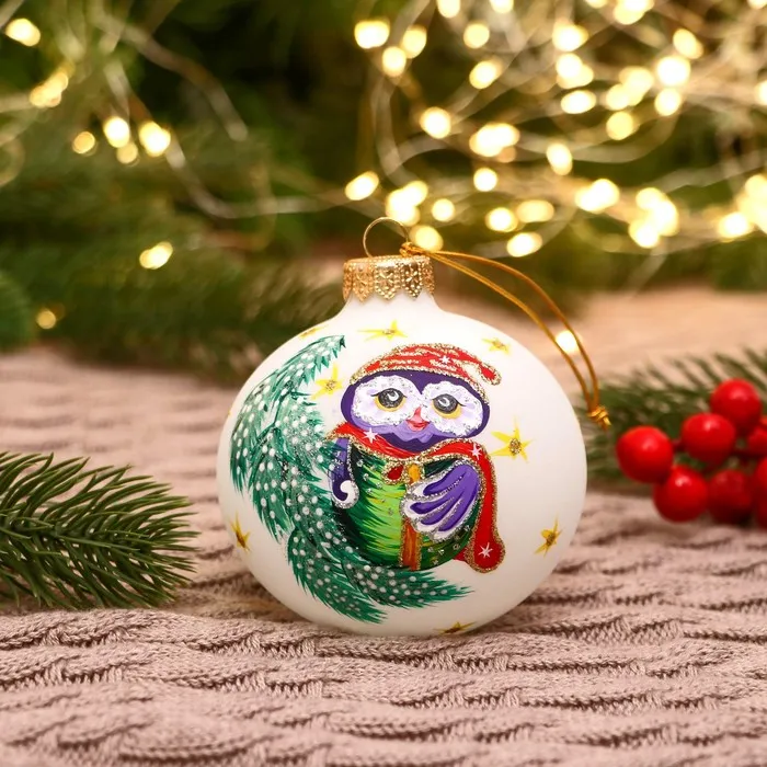 Ёлочный шар d-8 см "Птенчик на веточке" ручная роспись, белый — Характеристики