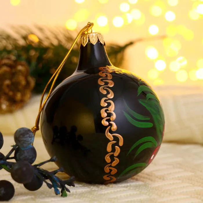 Ёлочный шар d-8 см "Вишенки" ручная роспись — Характеристики
