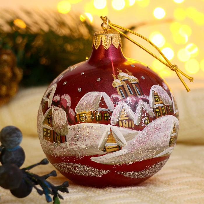 Ёлочный шар d=8 см «Часовня в зимней деревушке» ручная роспись — Характеристики