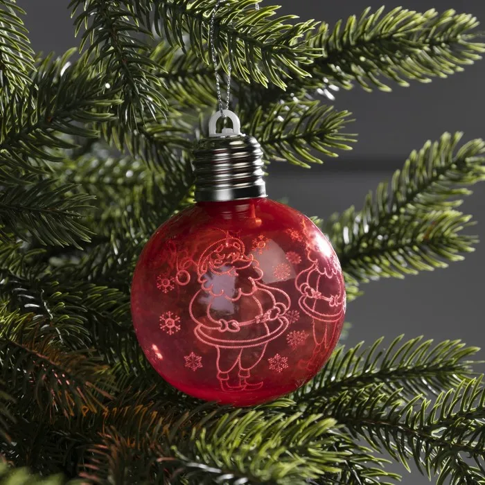 Ёлочный шар «Дед Мороз» красный, батарейки, 1 LED, свечение тёплое белое — Характеристики