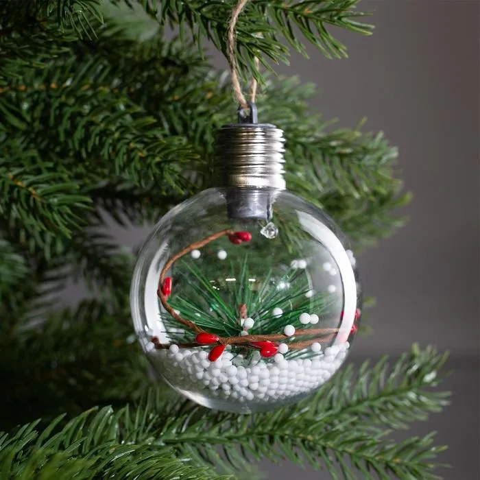 Новогодними игрушками традиционно украшают пушистые елочки, окна и ветки деревьев на улице, ведь переливы белых огоньков вселяют в сердца нотки очарования и радости. Ёлочные шары оригинально выглядят в зимнем декоре. Теплые огни притягивают взгляд, наполняют сердца ощущением волшебной сказки и создают вокруг уютно-праздничную атмосферу.
