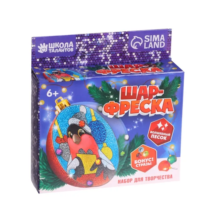 Ёлочный шар-фреска «Новый год! Снегирь с подарком», набор для творчества — Характеристики