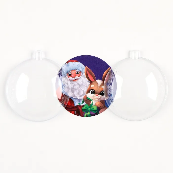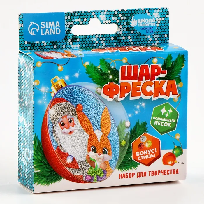 Ёлочный шар - фреска своими руками на новый год «Дед Мороз и зайка», набор для творчества — Характеристики