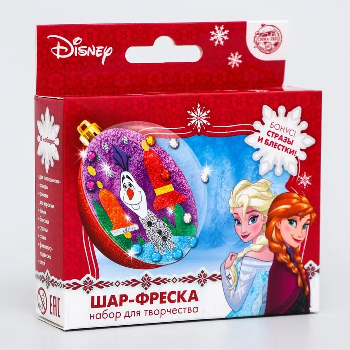 Ёлочный шар - фреска своими руками на новый год «Холодное сердце», набор для творчества — Характеристики