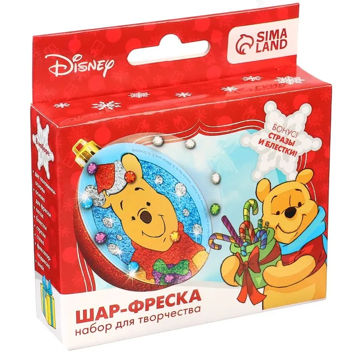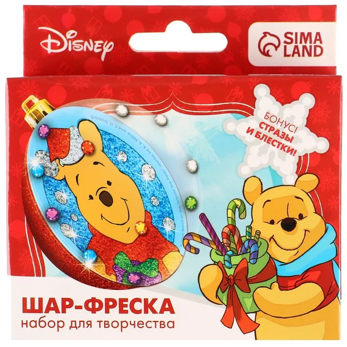 Ёлочный шар - фреска своими руками на новый год «Медвежоннок Винни», набор для творчества — Характеристики