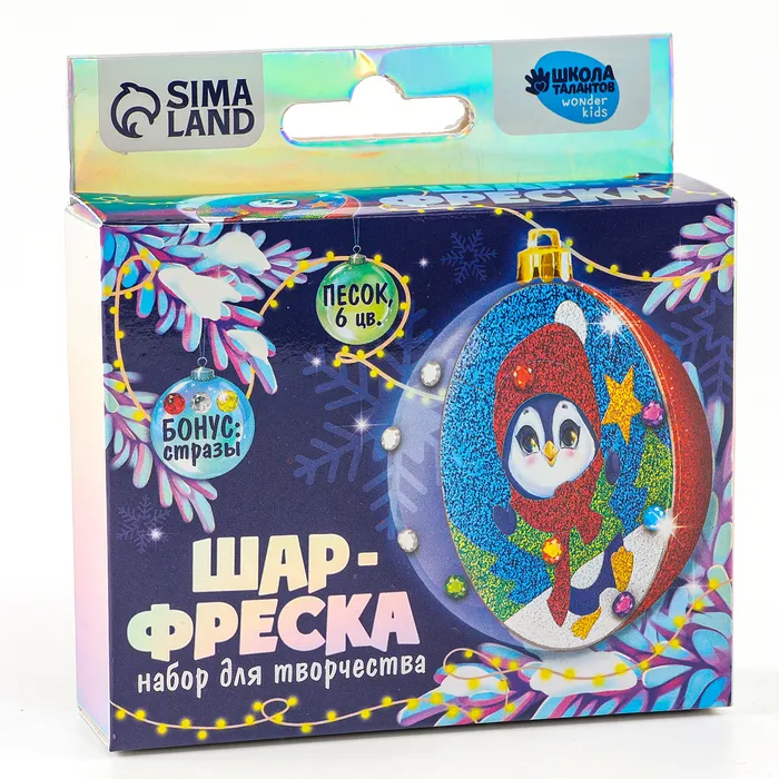 Ёлочный шар - фреска своими руками на новый год «Пингвин», набор для творчества — Характеристики