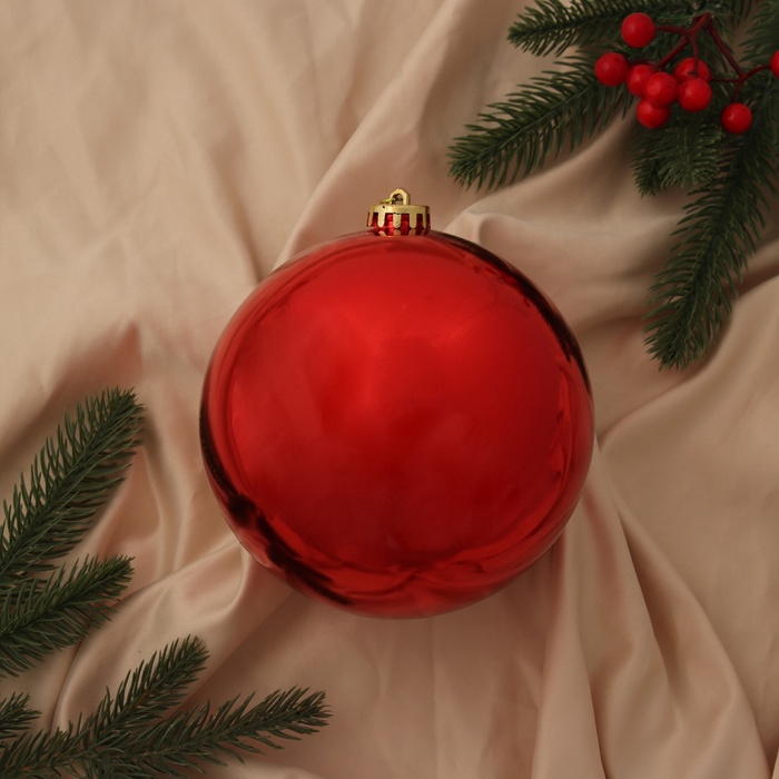 Яркий акцент в новогоднем декоре – крупный шар диаметром 15 см в насыщенном красном цвете. Пластиковое украшение с однотонным покрытием соединяет черты барокко и фьюжн, добавляя выразительности и глубины праздничной ёлке.