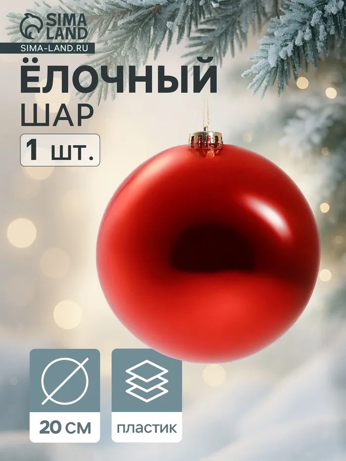 Добавьте выразительный акцент в праздничный декор! Крупный красный шар диаметром 20 см станет заметным украшением новогодней ёлки в стилях барокко и фьюжн. Однотонная поверхность подчёркивает классическую форму и насыщенный цвет, создавая эффектный образ.