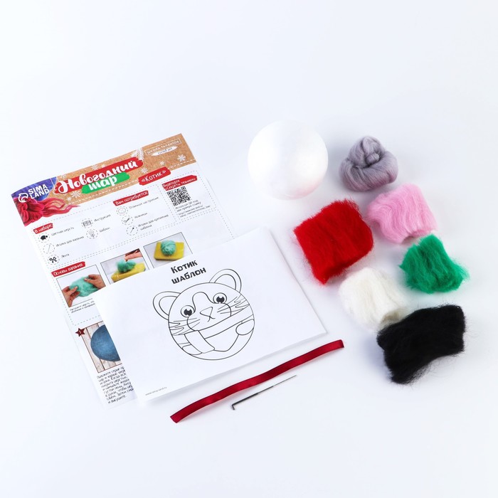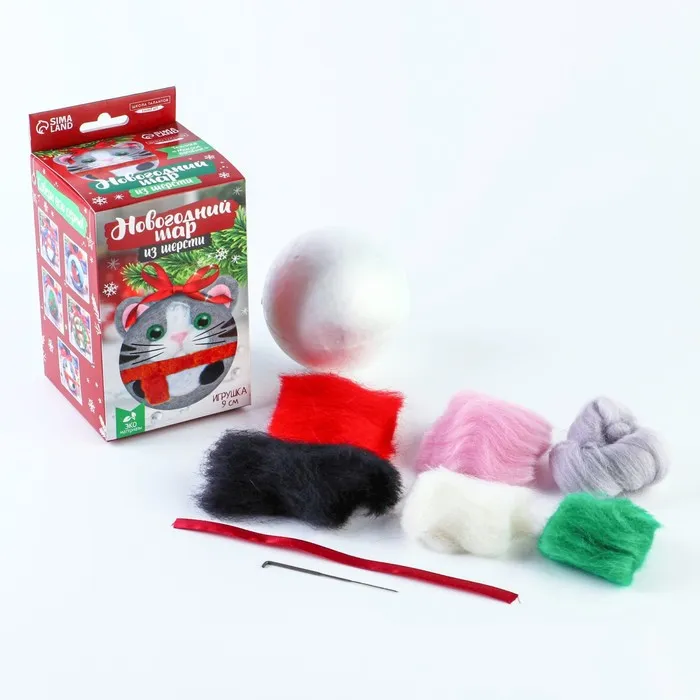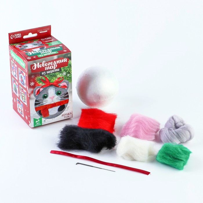 Ёлочный шар из шерсти на новый год «Кот в шарфике», набор для творчества — Характеристики