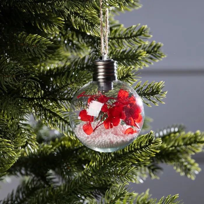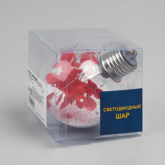 Ёлочный шар «Красные лепестки», батарейки, 5 LED, свечение тёплое белое — Характеристики