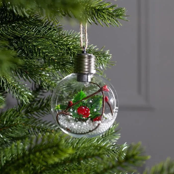 Новогодними игрушками традиционно украшают пушистые елочки, окна и ветки деревьев на улице, ведь переливы белых огоньков вселяют в сердца нотки очарования и радости. Ёлочные шары оригинально выглядят в зимнем декоре. Теплые огни притягивают взгляд, наполняют сердца ощущением волшебной сказки и создают вокруг уютно-праздничную атмосферу.