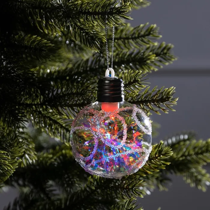 Ёлочный шар «Морозный узор», батарейки, 1 LED, свечение тёплое белое — Характеристики