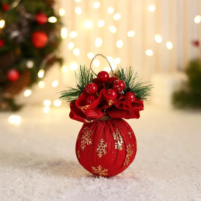 Ёлочный шар новогодний «Блеск рождества» снежинки, 8×12 см, красный — Характеристики