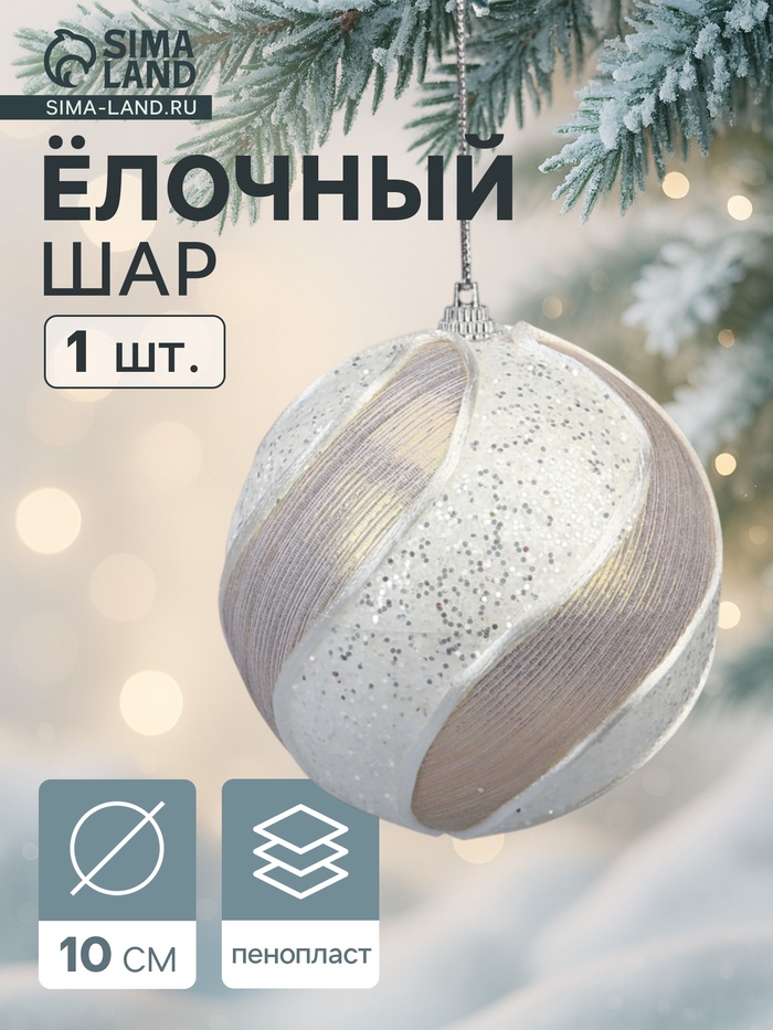 Ёлочный шар новогодний d=10 см «Карнавал» премиум, серебристо-белый — Характеристики