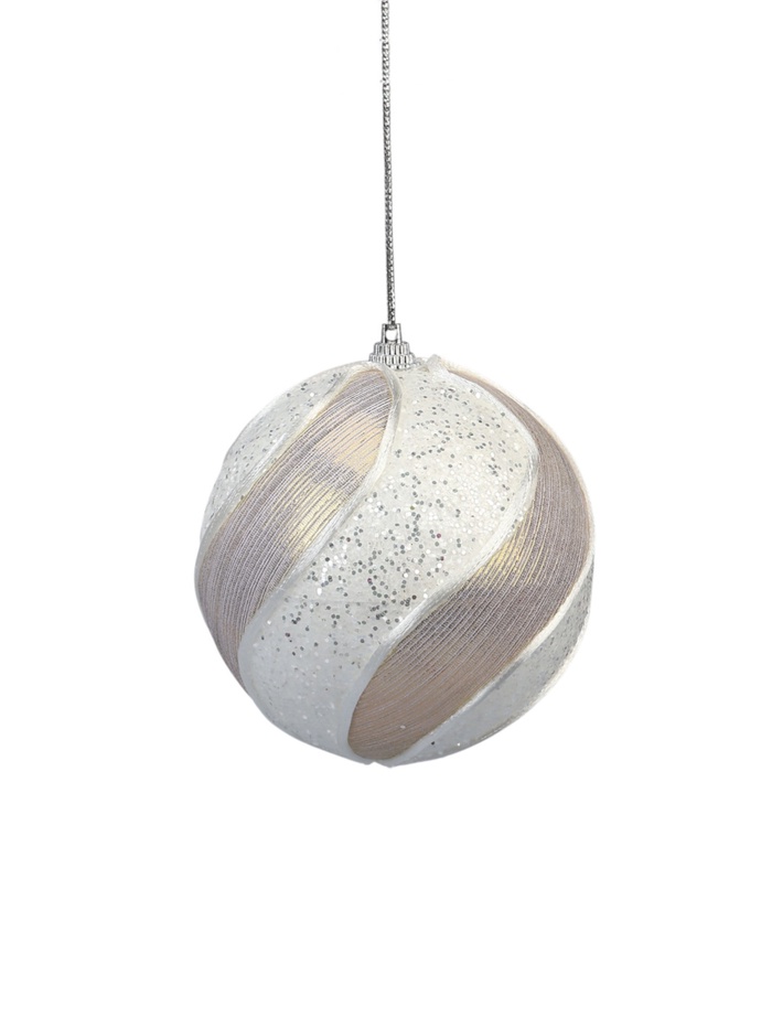 Элегантный новогодний шар диаметром 10 см в серебристо-белом цвете станет изысканным акцентом в вашем праздничном оформлении. Его утончённый дизайн и декоративный рисунок придают шарикам особую выразительность, создавая атмосферу волшебства и уюта. Изготовленный из прочного материала, этот шар гарантирует долговечность и сохранение своего привлекательного внешнего вида на протяжении многих сезонов.