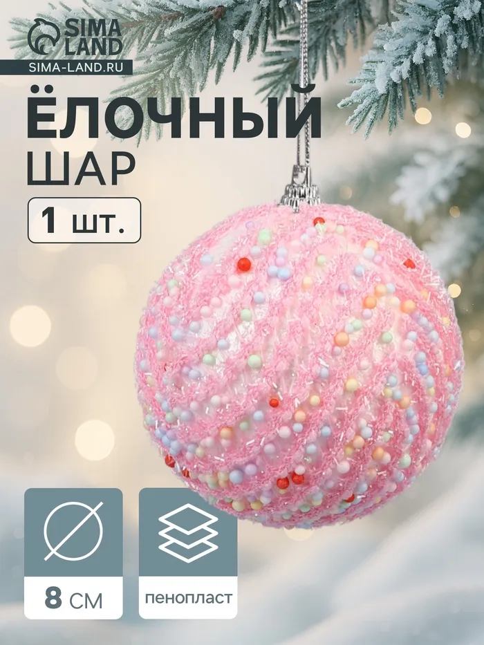 Ёлочный шар новогодний d=8 см «Карнавал» колорит, розовый — Характеристики