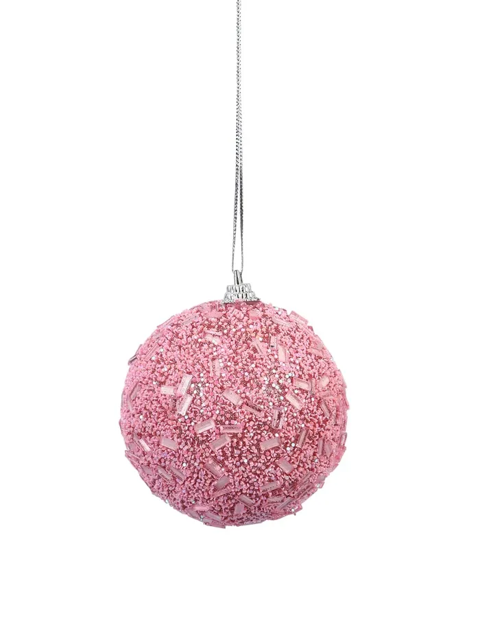 Розовый новогодний шар диаметром 8 см с мерцающим эффектом добавит волшебства в ваш праздничный декор. Его яркий цвет и оригинальный рисунок привлекут внимание и создадут атмосферу радости и уюта. Изготовленный из прочного материала, этот шар легко крепится на ёлку и сохраняет свою привлекательность на протяжении многих сезонов.