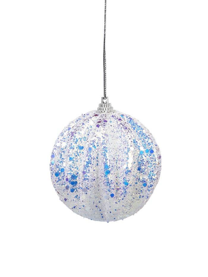 Этот шар помогает подчеркнуть красоту новогоднего оформления, внося в интерьер нотки спокойствия и торжественности. Его дизайн подходит для домашнего декора и общественных пространств, дополняя праздничную атмосферу.