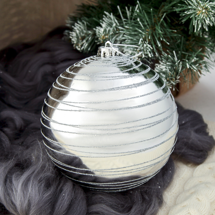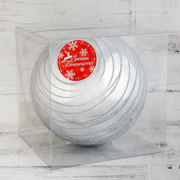 Этот шар станет центральным элементом вашей новогодней ёлки, создавая атмосферу уюта и праздника. Его серебристый цвет и стильный рисунок подчеркивают красоту других украшений, делая декор гармоничным и завершённым. Он отлично смотрится как в классических, так и в современных интерьерах, добавляя нотку элегантности.
