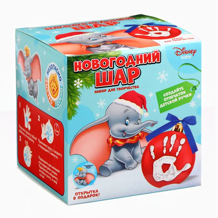 Ёлочный шар с отпечатком ручки на новый год «Дамбо», набор для творчества — Характеристики