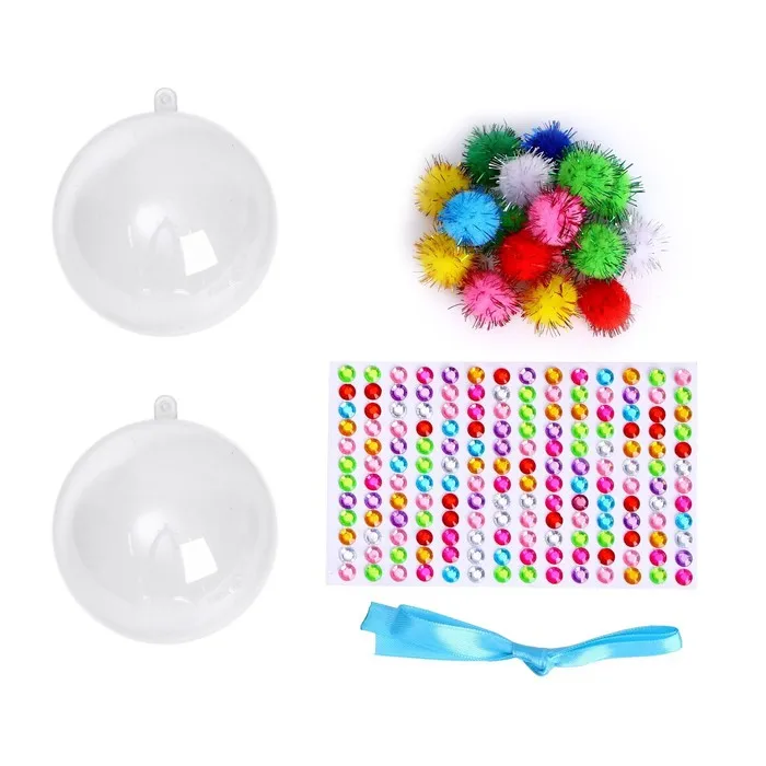 - Поместите помпоны в половину шара и закройте второй половинкой.