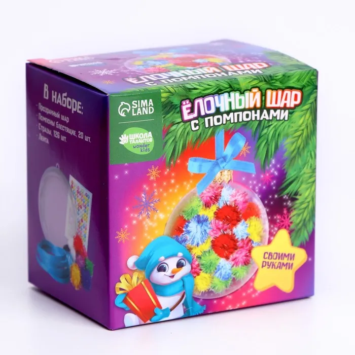 Ёлочный шар с помпонами своими руками на новый год «Снеговик», набор для творчества — Характеристики
