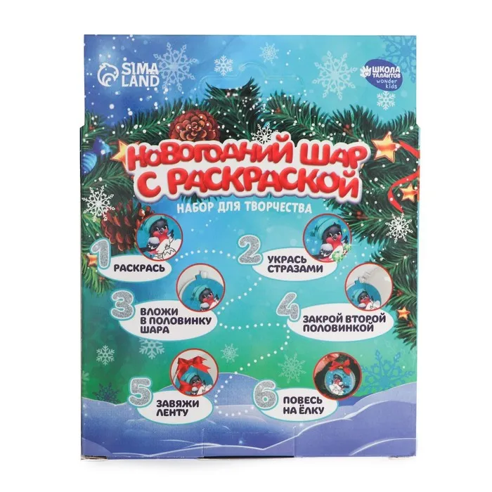 Ёлочный шар с раскраской на новый год «Снегирь», набор для творчества — Характеристики