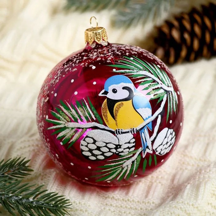 Этот шар напоминает о тихих зимних утра, когда синичка заглядывает в окно, принося свежесть и надежду. Его образ создаёт атмосферу спокойствия и умиротворения, дополняя праздничный интерьер теплыми оттенками и лёгкой игрой света на стекле. Вешая его на ёлку, вы добавляете нотку природы, которая связывает праздник с воспоминаниями о зимних прогулках и семейных традициях, делая каждый момент более значимым.