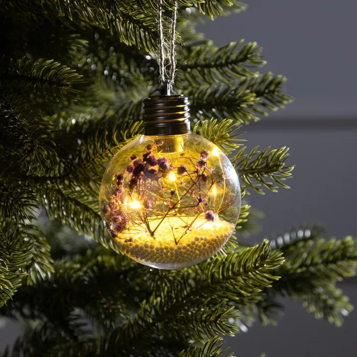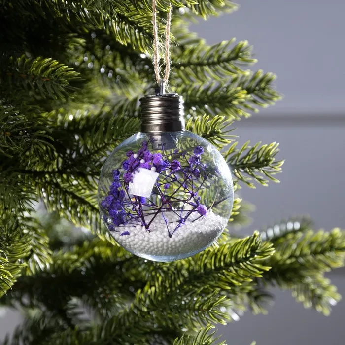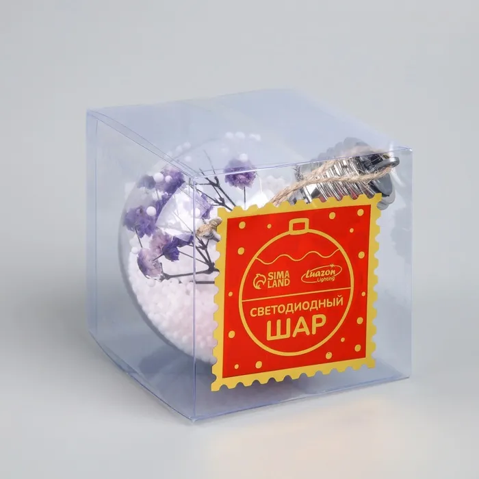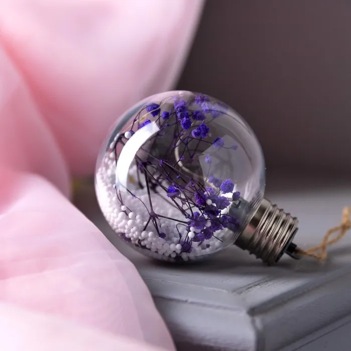 Ёлочный шар «Сиреневые сухоцветы», батарейки, 5 LED, свечение тёплое белое — Характеристики