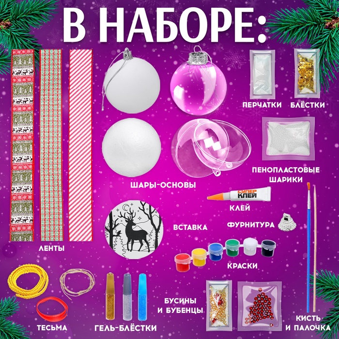 Ёлочный шар своими руками «Ёлочные игрушки», набор для творчества, 4 шара — Характеристики