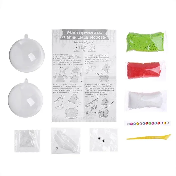 Ёлочный шар своими руками на новый год «Дед Мороз» с массой для лепки, набор для творчества — Характеристики