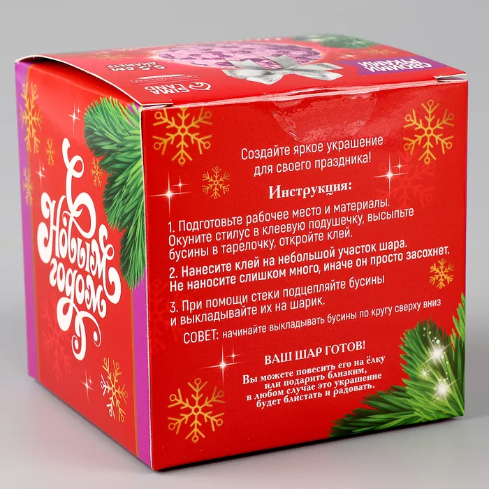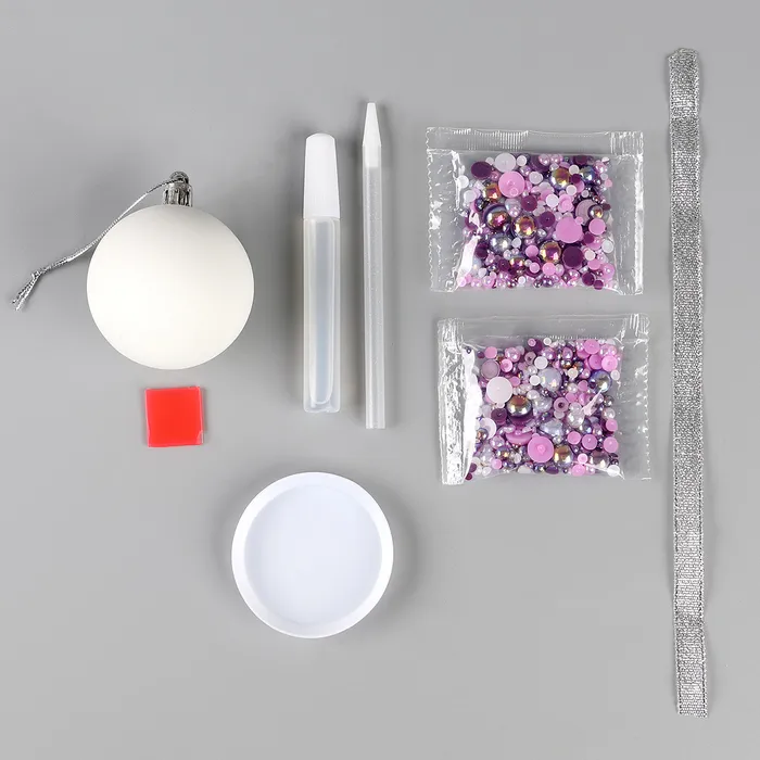 Ёлочный шар своими руками на новый год. Декор полубусинами и блестками «Фиолетовый», набор для творчества — Характеристики