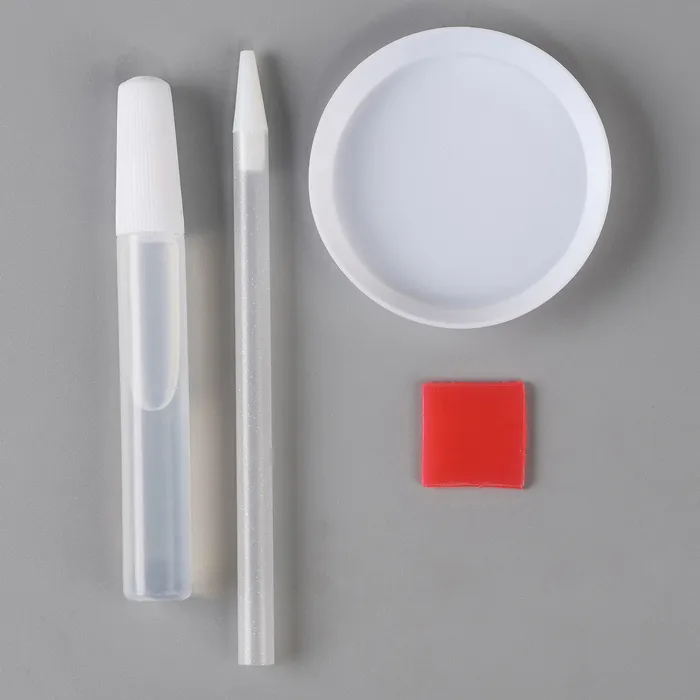 Чтобы получить сверкающий рисунок, ребёнку предстоит нанести клей и разложить бусинки специальным карандашом по шарику.