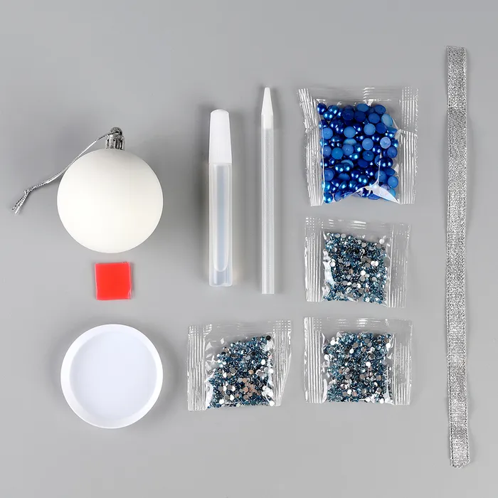 Ёлочный шар своими руками на новый год. Декор полубусинами и блестками «Синий и голубой», набор для творчества — Характеристики