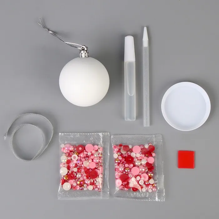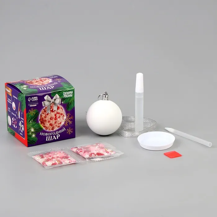 Ёлочный шар своими руками на новый год. Декор полубусинами «Красный», набор для творчества — Характеристики