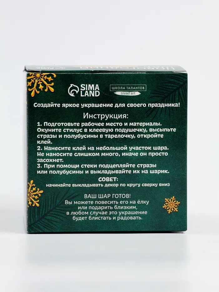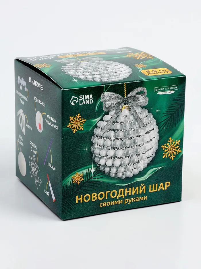 Ёлочный шар своими руками на новый год. Декор стразами и полубусинами «Белый и серебро», набор для творчества — Характеристики