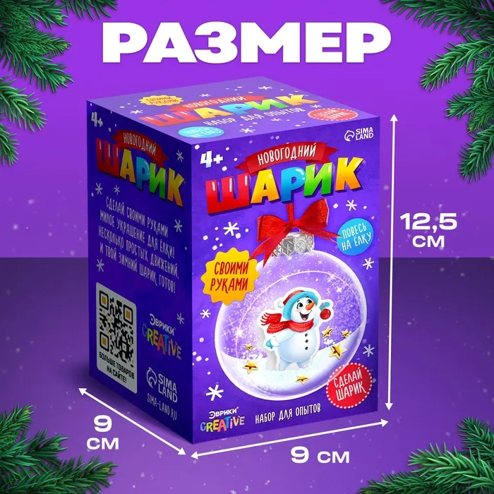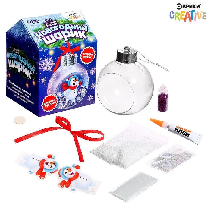 Ёлочный шар своими руками «Снеговик», набор для опытов, диаметр 7 см — Характеристики