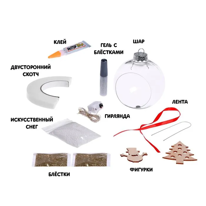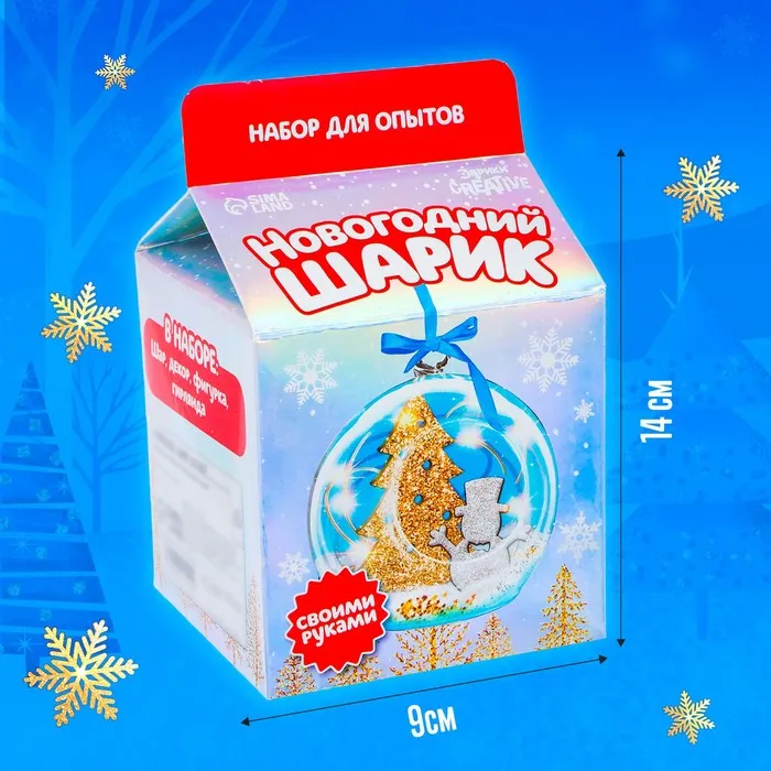 Ёлочный шар своими руками «Снеговик с ёлочкой», набор для опытов, диаметр 11 см — Характеристики