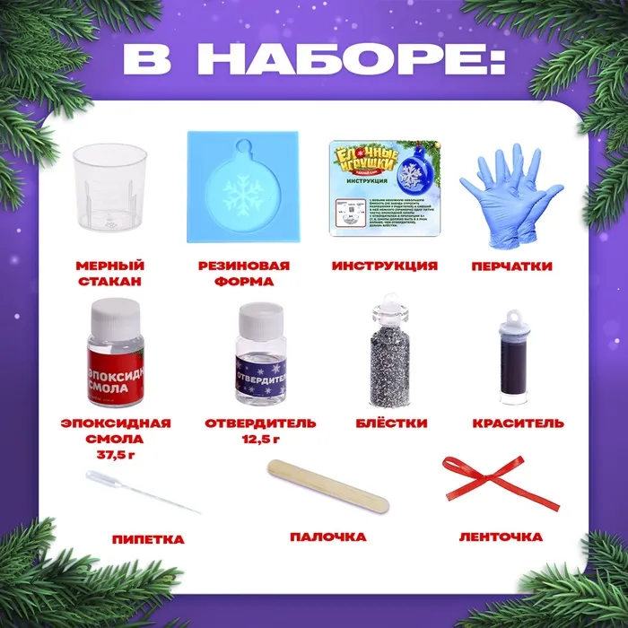 Ёлочный шар своими руками «Застывающие фигурки из эпоксидной смолы», набор для опытов — Характеристики