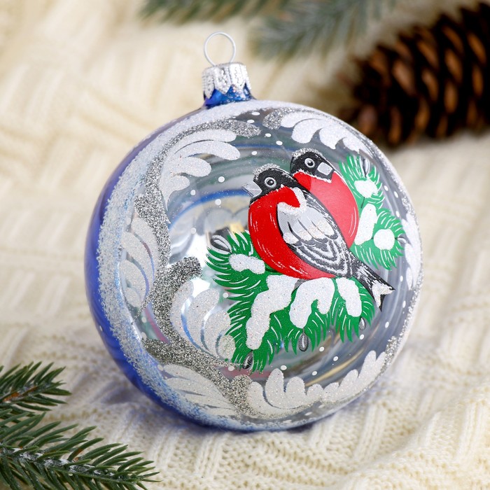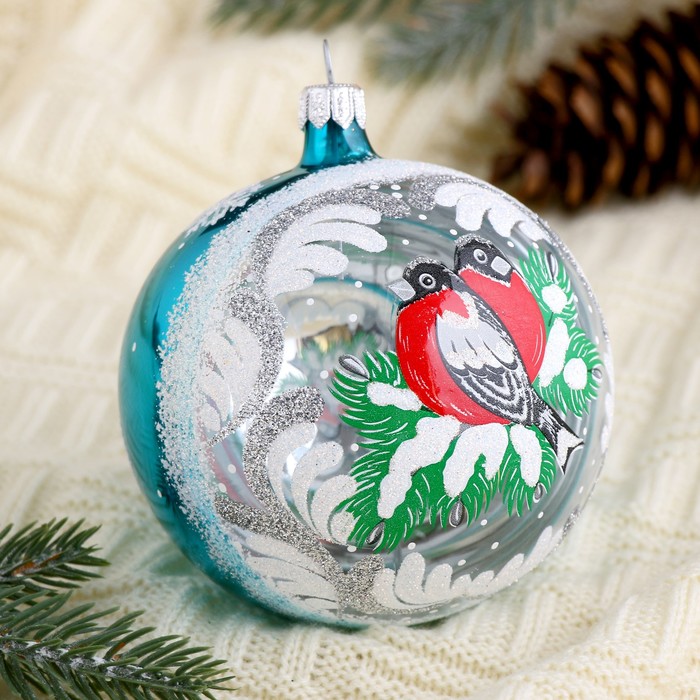 Шар Зимняя ветка для ёлки диаметром 9,5 см добавит зимнего очарования празднику. Синий цвет и рисунок в стиле советского фьюжн передают атмосферу снежных традиций, делая его частью семейного декора. Этот новогодний аксессуар гармонично вписывается в ёлочное убранство, подчёркивая индивидуальность каждого дома.