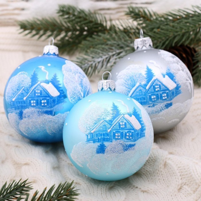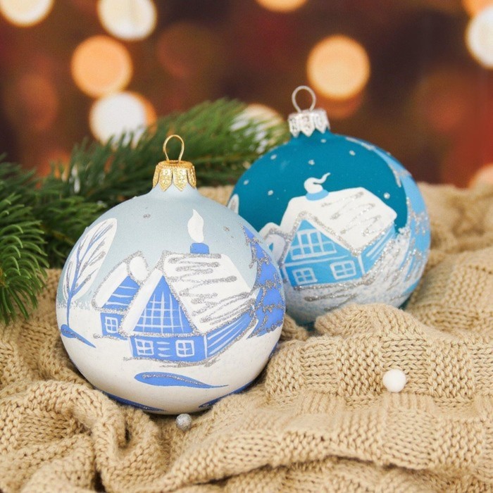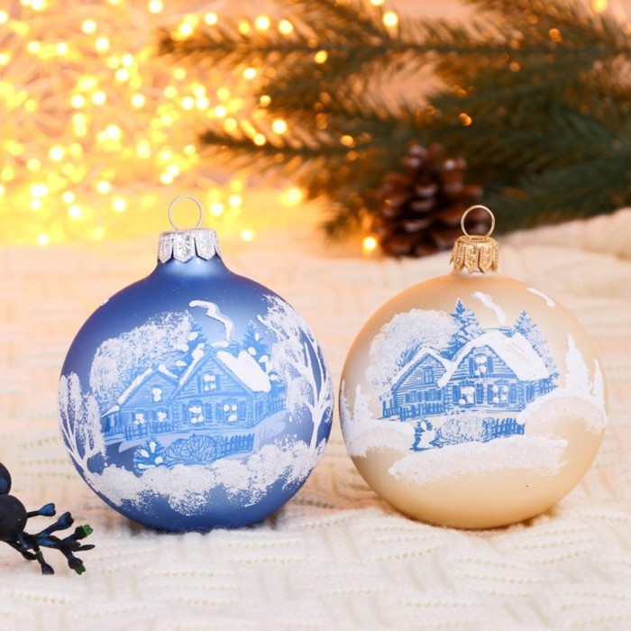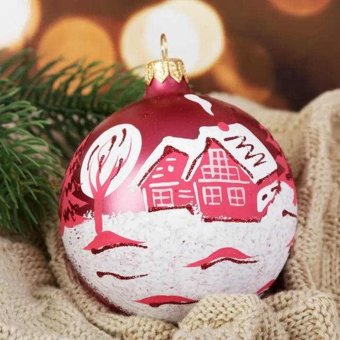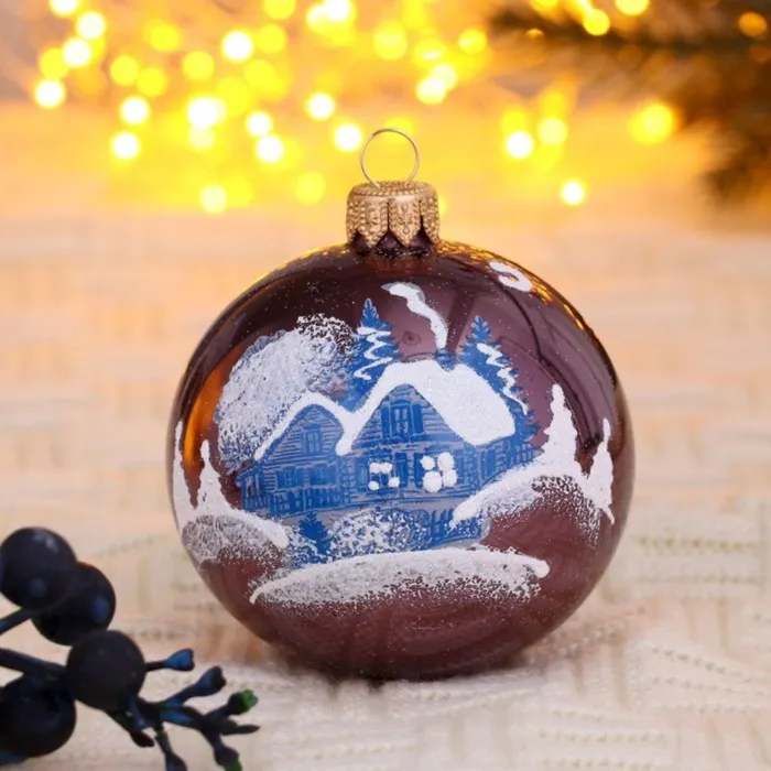 - Форма — шар, классический элемент любого новогоднего убранства.