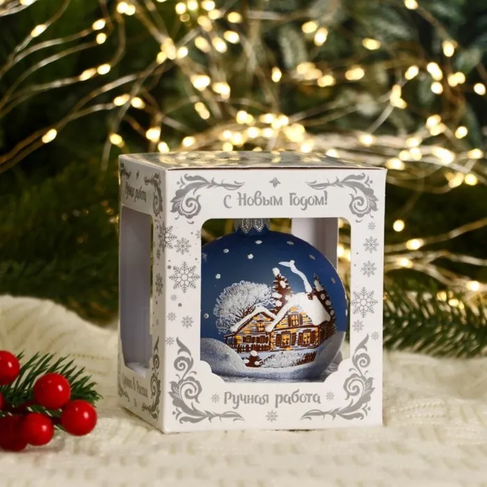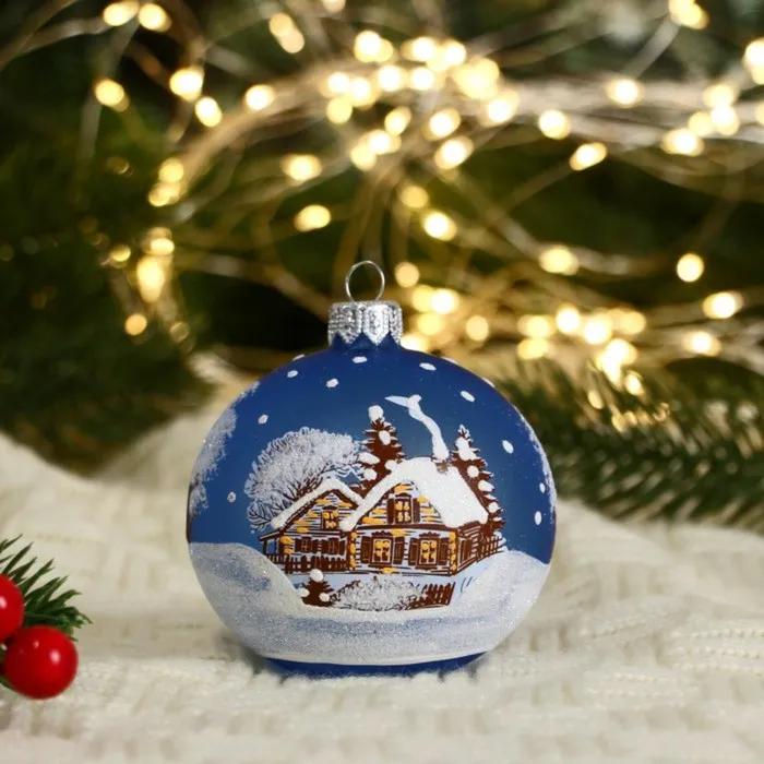 Этот шар добавляет дереву и дому ощущение зимнего тепла и семейного уюта. Голубой оттенок и резная детализация работают вместе, чтобы сделать ёлку частью вашей личной новогодней истории. Используйте его как основной акцент или как фоновое дополнение — одинаково хорошо усиливает атмосферу торжества и предпраздничного ожидания.
