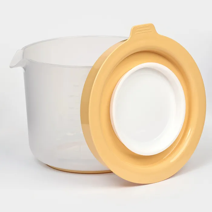 Ёмкость для миксера предназначена для комфортного взбивания продуктов миксером или блендером. Процесс приготовления становится комфортным благодаря специальной крышке, защищающей от разбрызгивания. В ёмкости легко хранить уже готовые коктейли, достаточно лишь закрыть отверстие дополнительной мягкой крышкой, защищающей продукты от заветривания. Также ёмкость оснащена носиком и ручкой. А благодаря шкале измерений вы можете использовать ёмкость в качестве мерного стакана.